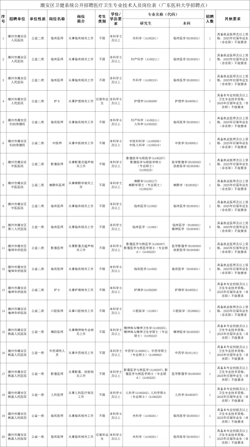 潮安区卫生健康局属下潮安区人民医院等14家事业单位面向社会公开招聘医疗