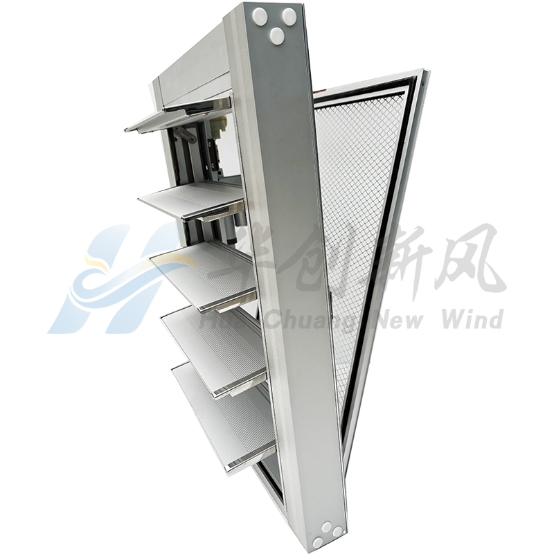 相较于传统通风设备,华创新风IP54电动通风窗在运维便捷性上实现突破。传统产品维护需拆外框、卸螺丝,耗时久且易影响设备运行,而该产品通过内维护设计,打开设备内部面板即可完成滤材更换与叶片清洁,大幅提升运维效率。此外,产品支持定制化服务,可根据客户需求调整叶片尺寸、驱动方式,适配储能、风电、数据中心等多领域应用场景。