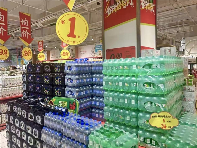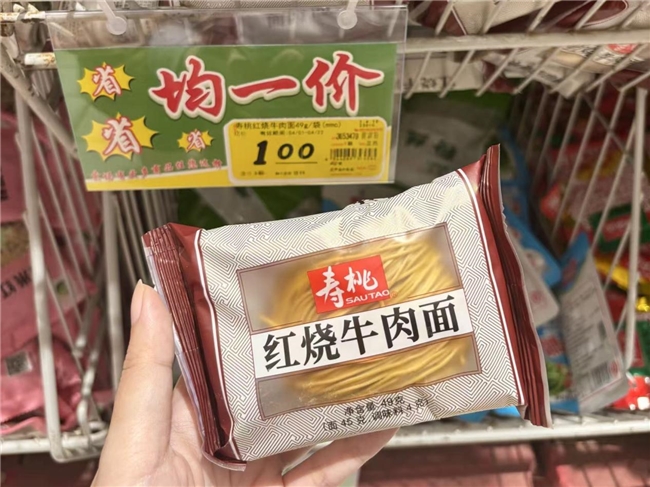 周五傍晚,广州增城区大润发超市慢慢热闹起来,醒目的“均一价”标识贯穿多个区域。300ml的零度可口可乐、带调料的一人份红烧牛肉面、125ml的豆本豆小豆奶、150g的鸡蛋挂面均售价1元。“这种小包装挺方便的,一次喝完,不用担心跑气,也好控制糖分。”一位正在选购的年轻男士表示。