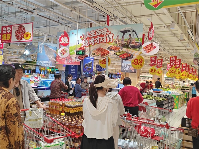 打工人小赵推着购物车在生鲜区前停下,他感慨:“以前想在家烧烤,光买调料就要买一大堆,用一次就放到过期。现在好了,1块钱一罐的啤酒,配上小份量的烤肉串和烤肉酱,不到50块钱,我就能在家做一顿烧烤,发个朋友圈,朋友们都以为我去了烤肉店。”